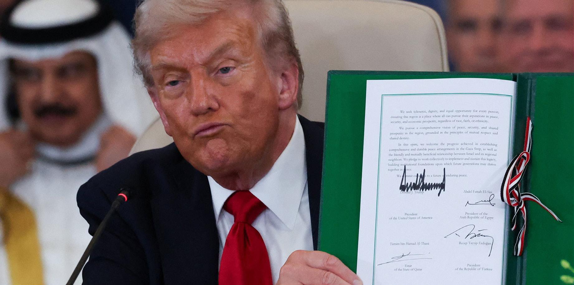 su sello y levantaron el documento con el plan de Trump sobre el fin de la guerra iniciada el 7 de octubre de 2023.