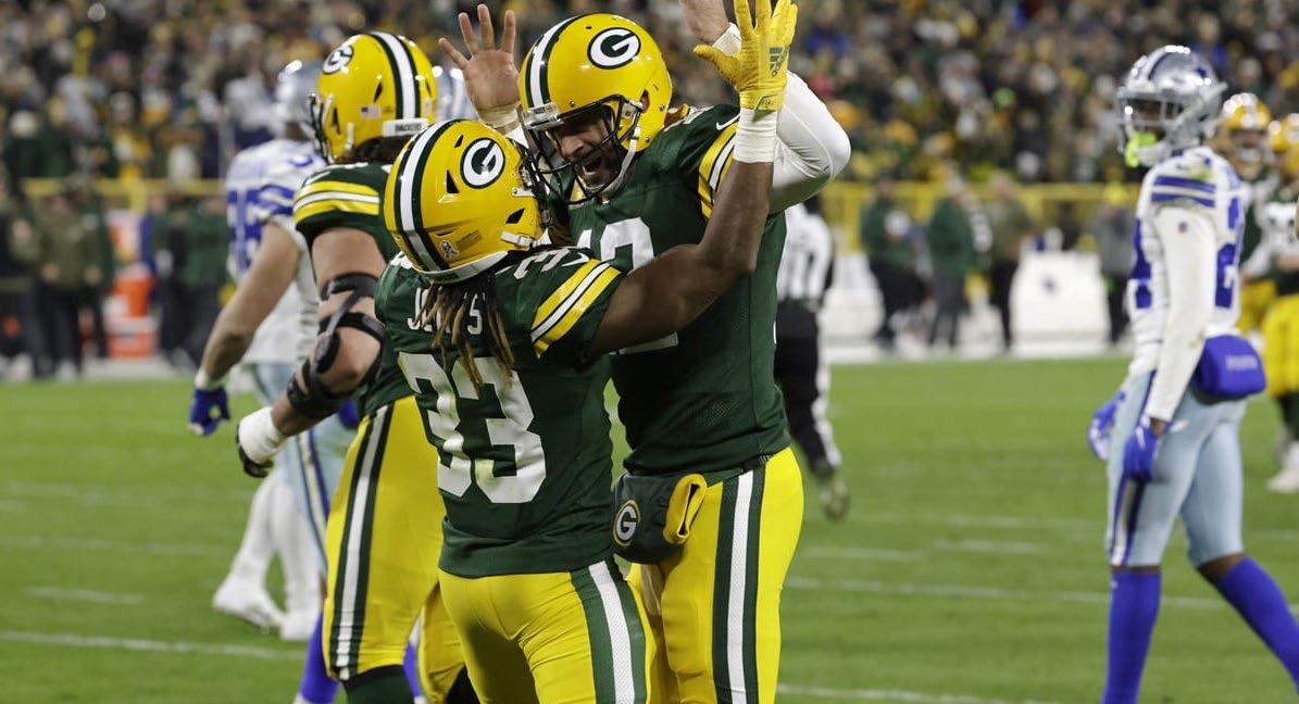 salió del campo para darle paso al pateador Mason Crosby, que conectó su onceava patada ganadora con 2 minutos por jugar o estando en tiempo extra. Sin embargo, los reflectores se los llevó el novato Christian Watson, que ter minó el partido con tres touchdowns, 4 recepciones y 107 yardas recibidas.