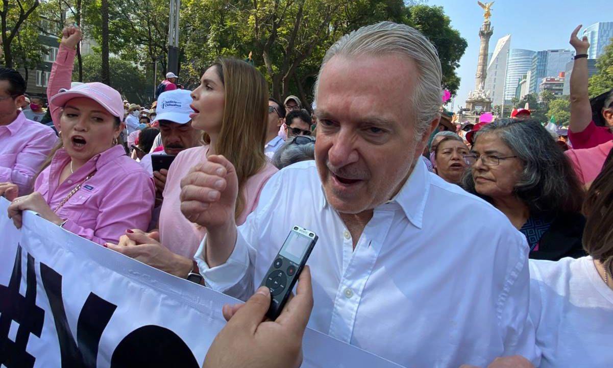 materia y construir condiciones equitativas para las elec ciones. “De manera paulatina y sistemática nos acostum bramos a la diversidad, a las contiendas competidas, a la alternancia en los ejecutivos, a los congresos plurales y a los mecanismos de diálogo, negociación y acuerdo que los mismos reclamaban”, declaró mientras aún había gente saliendo del Ángel de la Independencia, de donde arrancó la manifestación. Comentó que la alternancia en la presi dencia con Vicente Fox en 2000 no puede explicarse sin los órganos electorales que tiene el país y mencionó que aún México no llega a un “paraíso, apenas a una germinal democracia, pero que nos ha permitido a asentar la pluralidad política”. Exigió que Mexico no puede volver a una institución electoral alineada con el gobierno, incapaz de garantizar la necesaria imparcialidad de todo el proceso electoral. “Nuestro país no merece regresar al pasado por que lo construido permite elecciones auténticas. Piedra singular de todo sistema democrático. México no puede destruir los conocimientos adquiridos y el compromiso adquirió de los funcionarios que integran los servicios civiles de carrera “