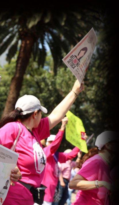 miles de mexiquenses procedentes de diversos municipios como Naucalpan, Tlalnepantla, Toluca, Cuautitlán, Tepotzot lán, Metepec, Almoyola, Huixquilucan, Villa Victoria, Coacalco, Atizapán, Nopaltepec, Calimaya, entre otros. A la espera de que inicie la manifestación que fue convocada por diversas organizaciones sociales, las y los mexiquenses se encuen tran gritando consignas como “El INE no se toca”. Aún más personajes de la esfera política han hecho presencia en el movimiento; Vicente Fox, por su parte, compartió a través de su cuenta de Twitter su apoyo por la marcha, además de que aprovechó la oportunidad para convocar a la ciudadanía a encontrarse en el Ángel de la Independencia. Desde el expre sidente panista Vicente Fox, hasta Elba Esther Gordillo, la ex titular del Sindicato Nacional de Trabajadores de la Educación (SNTE), varios políticos del país marcharon desde el Ángel de la Independencia hasta el Monumento a la Revolución.