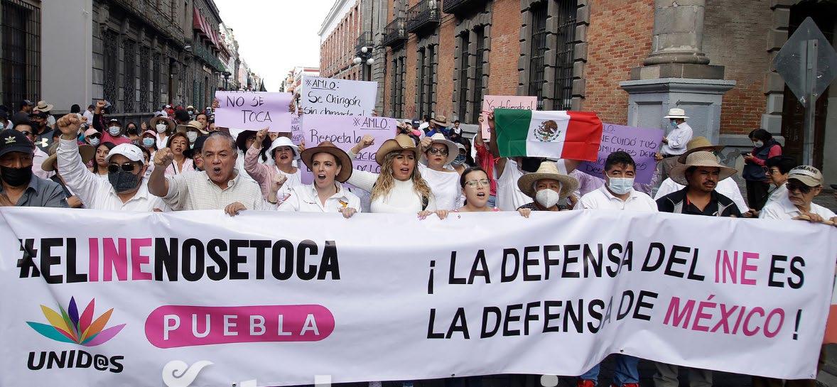 camiones que llevaron a quienes quisieran asistir a la marcha en la Ciudad de México. En Puebla, Puebla, la marcha convo cada por el empresario Claudio X. González movilizó a 10 mil personas. Las dirigencias locales del PRI y el PAN movilizaron a sus estructuras, a las que se sumaron ciudadanos. En Chi huahua capital, unas 8 mil personas caminaron de la glorieta de Pancho Villa hacia la plaza del Ángel, frente al palacio de gobierno, la manifestación concluyó con un mitin al cual acu dieron la consejera presidenta del Instituto Estatal Electoral, Yanko Duran. En tanto, en Cuernavaca, Morelos, alrededor de 2 mil 500 personas marcharon para defender el INE. En las inmediaciones, vendedores aprovechan para ofrecer playeras y gorras. En Mexicali, Baja California, unos mil ciudadanos protestaron contra la propuesta de reforma. Guanajuato unos 2 mil 500 inconformes, entre los que destacan legisladores albiazules y ex funcionarios marcharon en la ciudad de León. La manifestación inició en el Arco de la Calzada y culminó en el jardín principal con un mitin. En Cancún, Quintana Roo, la protesta conformada por alrededor de 4 mil ciudadanos inició a las 10 de la mañana, hora en la que comenzaron a arribar a la glorieta que acuna el Monumento al Diálogo Norte-Sur, mejor conocido como El Cebiche. En Mérida, Yucatán, alrededor de 4 mil manifestantes formaron una cadena humana alrededor de las instalaciones del INE, ubicadas en la colonia México, considerada una de las zonas de mayor valor adquisitivo. En Hermosillo, Sonora, unos tres mil ciudadanos se reunieron en las escalinatas del museo de la Universidad de Sonora y caminaron hasta llegar a las oficinas estatales del INE. Posteriormente, llegaron a la explanada del Poder Judicial del Estado. Tras un mitin de 45 minutos se retiraron.