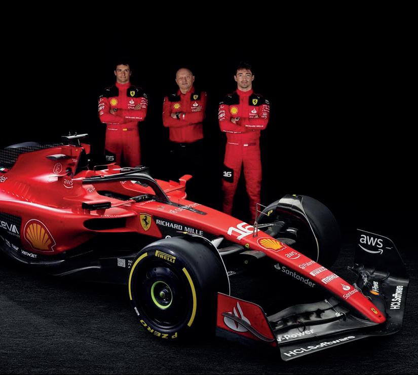 La escudería italiana Ferrari presentó este martes el SF-23, el nuevo monoplaza de Ferrari para el Mundial de Fórmula 1, con una puesta en escena diferente a la del resto de equipos, pues el español Carlos Sainz y el monegasco Charles Leclerc lo estrenaron en pista. No fue una presentación al uso la de Ferrari, que reunió en Maranello (Emilia-Romaña, norte), en el circuito de Fiorano, a un centenar de aficionados de la escudería italiana para presenciar el estreno del nuevo coche. Un monoplaza que mantiene su estética tradicional, sin sorpresas, en la que el rojo predomina y resalta respecto al resto de componentes.