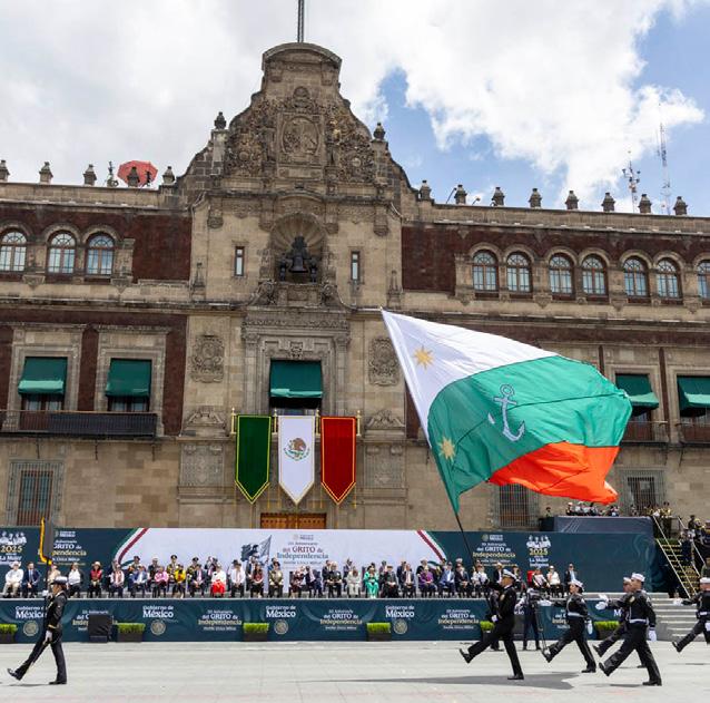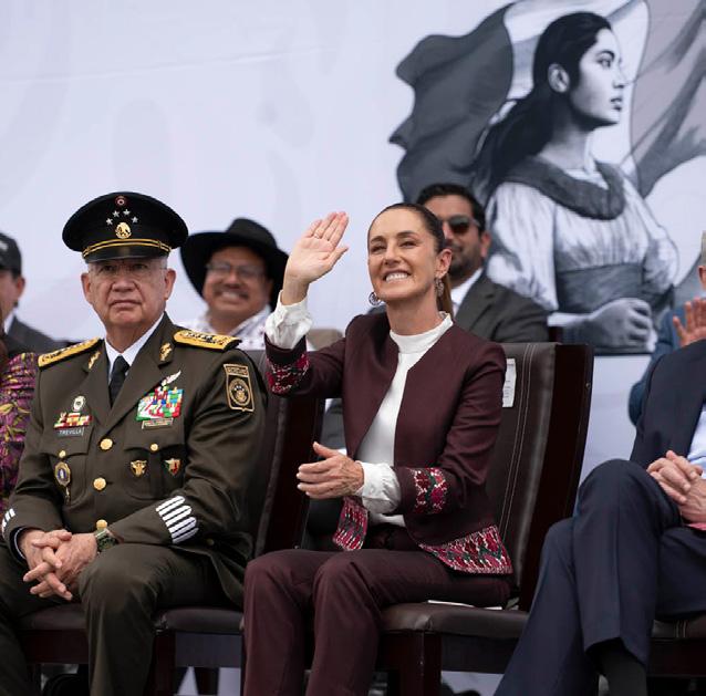 mujeres apenas eran mencionadas; salvo Ortiz y, más tarde, Vicario, el panteón cívico era masculino. La presidenta rompió con esa tradición y abrió espacio a insurgentas olvidadas y grupos marginados. Por el otro, reforzó su discurso de gobierno: dignidad, igualdad, democracia y justicia como ejes de legitimidad. El gesto se completó con un detalle inédito: la escolta del Heroico Colegio Militar integrada solo por cadetes mujeres. Antes ya podían ingresar, pero solo en áreas como Sanidad Militar. Desde 2021 se abrió su participación plena en todas las armas y ahora portaron la bandera en la ceremonia del Grito, el acto cívico más solemne de la nación, encabezado también por una mujer. El mensaje fue claro: la patria ya no se encarna solo en los “padres fundadores”, sino también en las mujeres que lucharon y siguen luchando por ella. Por televisión se vio a la presidenta deteniéndose frente al retrato de Josefa Ortiz, acompañada de su esposo, Jesús María Tarriba, para recibir el saludo de ordenanza antes de tomar la bandera nacional en sus manos y salir al balcón central de
