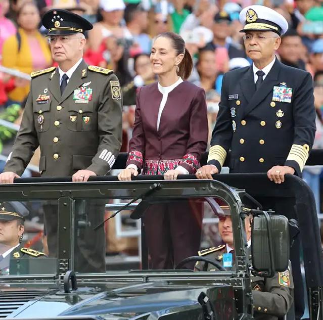 Por primera vez en la historia, una mujer presidenta encabezó el desfile. Claudia Sheinbaum, como presidenta y comandanta suprema de las Fuerzas Armadas, presidió el evento desde el Zócalo capitalino.