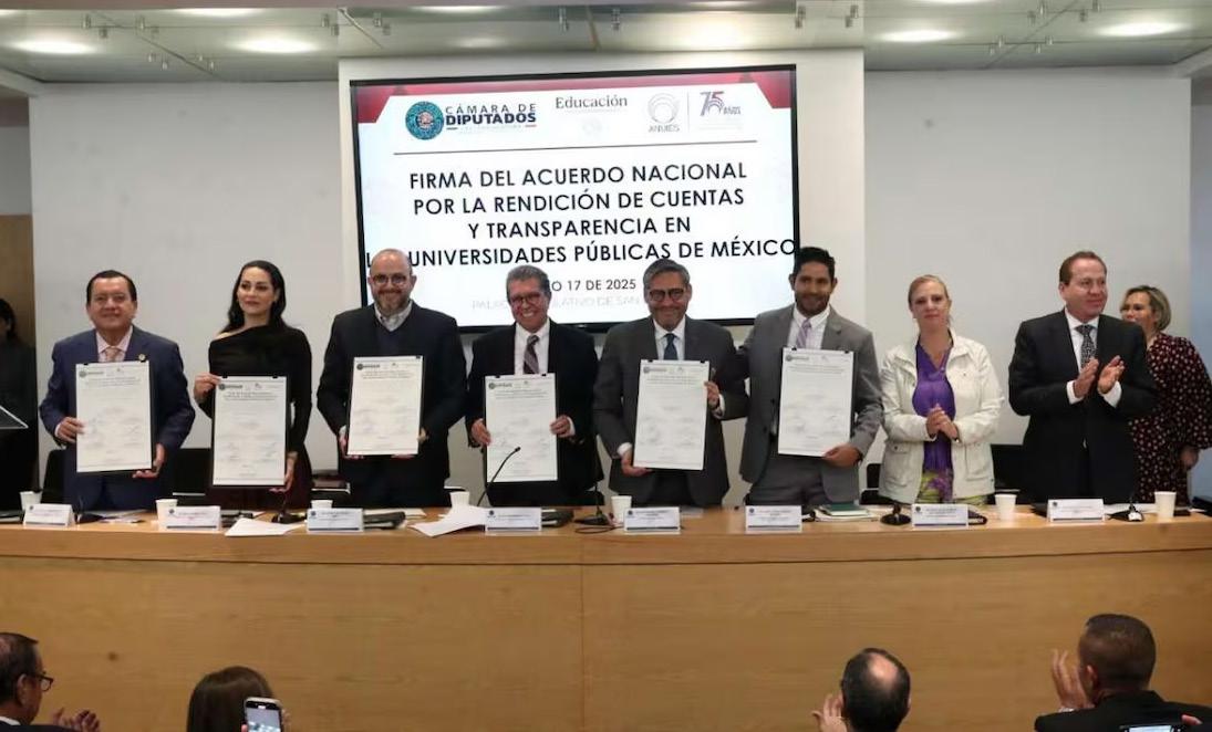 “Hemos avanzado y, sin embargo, creo que debemos profundizar. Por eso, este convenio, acuerdo y pacto, que hoy suscribimos con ustedes desde el Poder Legislativo, con el testimonio y con testigo al Ejecutivo, al que no se le puede dejar fuera en esta importante labor con la que hoy nos comprometemos”, declaró. Por su parte, el presidente de la Comisión de Vigilancia de la Auditoría Superior de la Federación, diputado Javier Octavio Herrera Borunda (PVEM), expresó que con la firma del acuerdo “se demuestra el compromiso por la transparencia y la austeridad”. Indicó que el presupuesto asignado por la Cámara de Diputados a la educación pública superior alcanza los 123 mil millones de pesos para el ejercicio 2025 y llega a más de 244 instituciones de educación superior y en beneficio de casi 5 millones 400
