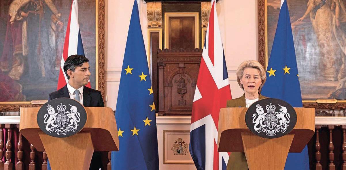 El Reino Unido y la Unión Europea proclamaron ayer “un nuevo capítulo” en su relación bilateral, tras cerrar un esperado acuerdo sobre controles comerciales en la provincia británica de Irlanda del Norte. Después de meses de tensión y de arduas negociaciones, el primer ministro británico, Rishi Sunak, y la presidenta de la Comisión Europea, Ursula von der Leyen, anunciaron el acuerdo en una conferencia de prensa en Windsor, al oeste de Londres. “Es el comienzo de un nuevo capítulo en nuestras relaciones”, dijo Sunak. “El Reino Unido y la Unión Europea han tenido tal vez sus diferencias en el pasado, pero somos aliados, socios comerciales y amigos”, enfatizó.