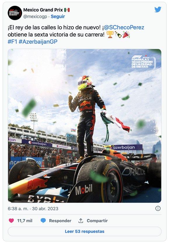 Con esto no se confirma más que el dominio de Pérez en circuitos callejeros, el de Red Bull en ambos campeonatos y que en las sguientes semanas se vendrá una lucha impresionante entre Checo y Max por la cima de la tabla de los pilotos.