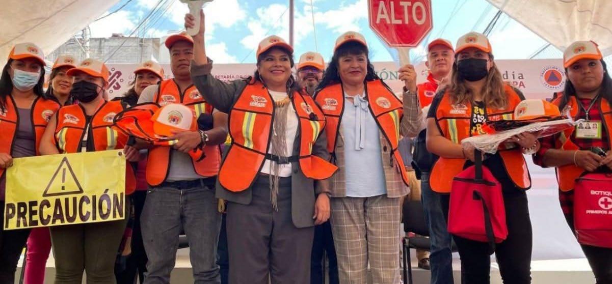 Riesgos y Protección Civil del Gobierno de la Ciudad de México y la Dirección General de Servicios Educativos de Iztapalapa. En ese sentido, participan cinco padres de familia por cada turno escolar, a quienes se capacitó en materia de protección civil, mitigación de riesgos y movilidad vial. Cabe mencionar que esta estrategia se inició con las escuelas cuyo entorno vial representa mayor riesgo, pero el programa llegará a los 497 planteles públicos de la demarcación. El kit entregado a las escuelas está integrado por trafitambos con reflectores, gorras, chalecos, silbatos, paletas de Alto y Siga, un botiquín básico, una cuerda para delimitar y banderines de precaución. La entrega de kits se realiza en coordinación con la autoridad educativa y las direcciones territoriales de la alcaldía, que también darán seguimiento al programa. M
