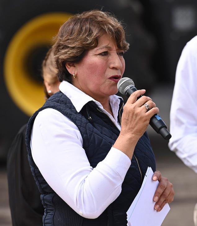 Delfina Gómez arrancan modernización vial en el Oriente del Edoméx con trenes de pavimentación