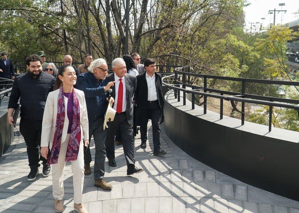 El presidente Andrés Manuel López Obrador y la Jefa de Gobierno, Claudia Sheinbaum, inauguraron un puente de Los Pinos hacia la Segunda Sección del Bosque de Chapultepec y el espacio dedicado a la arqueología