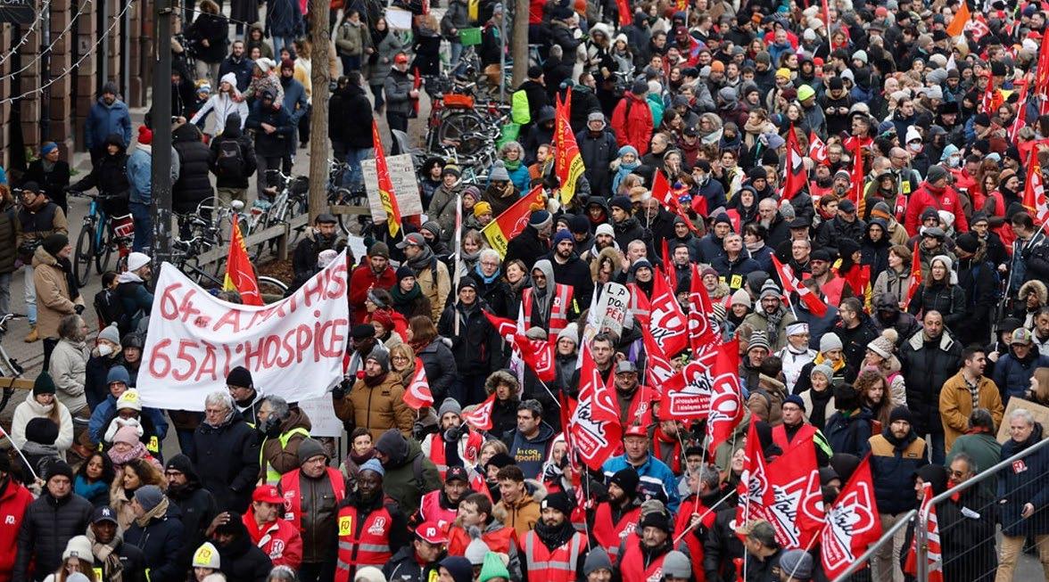 Trenes parados, escuelas cerradas, cientos de miles de manifestantes en las calles. Francia vive este jueves una jornada de protestas masivas contra el impopular retraso de la edad de jubilación a 64 años, que ponen a prueba el crédito político del presidente Emmanuel Macron.