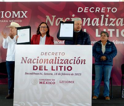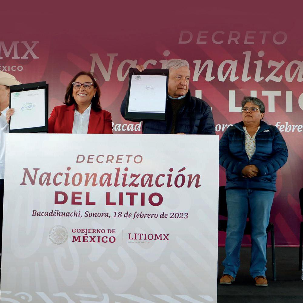 El presidente Andrés Manuel López Obrador firmó el decreto mediante el cual se declara que el litio es propiedad de la Nación y su explotación será facultad exclusiva del gobierno de México. Mediante el decreto se señala que la explotación del litio será exclusiva de la empresa LitioMx, y solo se permitirá la participación de capital privado en sociedad con esa paraestatal. Desde Bacadéhuachi, en la sierra de Sonora, López Obrador firmó el decreto y reiteró que el litio será un mineral estratégico para el futuro de la tecnología en el mundo, y por ello decidió que su explotación sea facultad exclusiva del Estado.