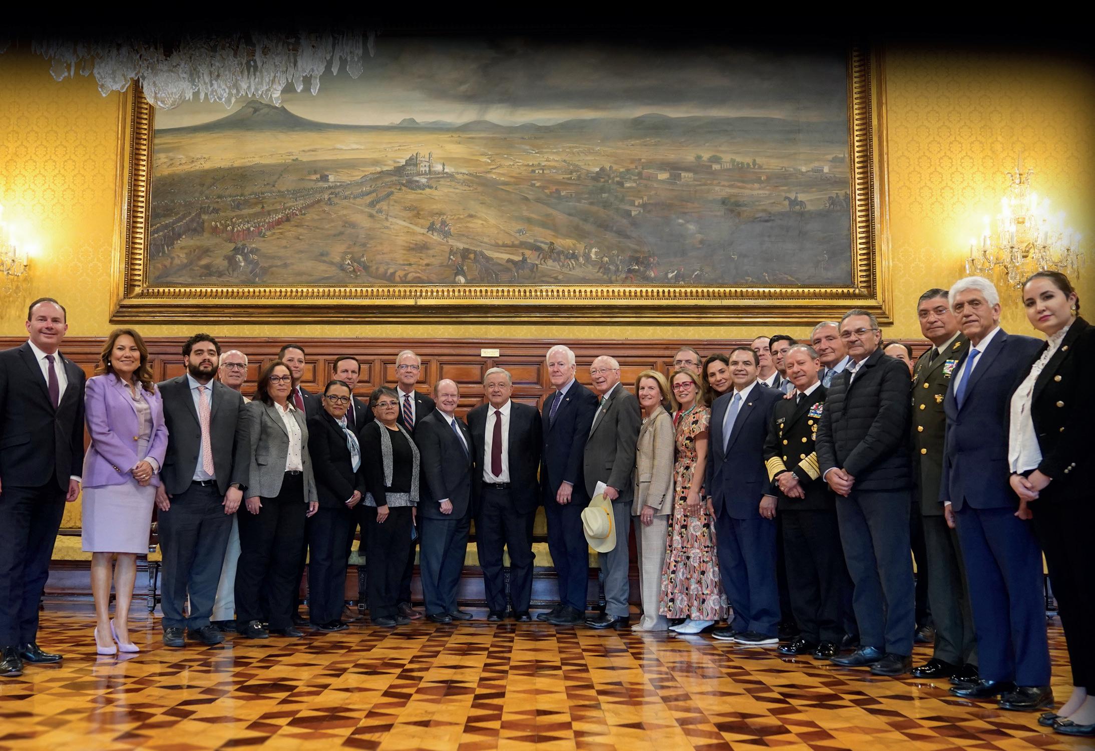 El presidente López Obrador estuvo acompañado por el Canciller Marcelo Ebrard; el secretario de Gobernación Adán Augusto López Hernández. Así como la secretaria de Seguridad, Rosa Icela Rodríguez; el secretario de la Defensa, general Luis Cresencio Sandoval González; el secretario de Marina, almirante José Rafael Ojeda Durán, la secretaria de Energía, Rocío Nahle; la secretaria de Economía, Raquel Buenrostro; el director de Pemex, Octavio Romero; y el subsecretario de Hacienda, Juan Pablo de Botton, entre otros.