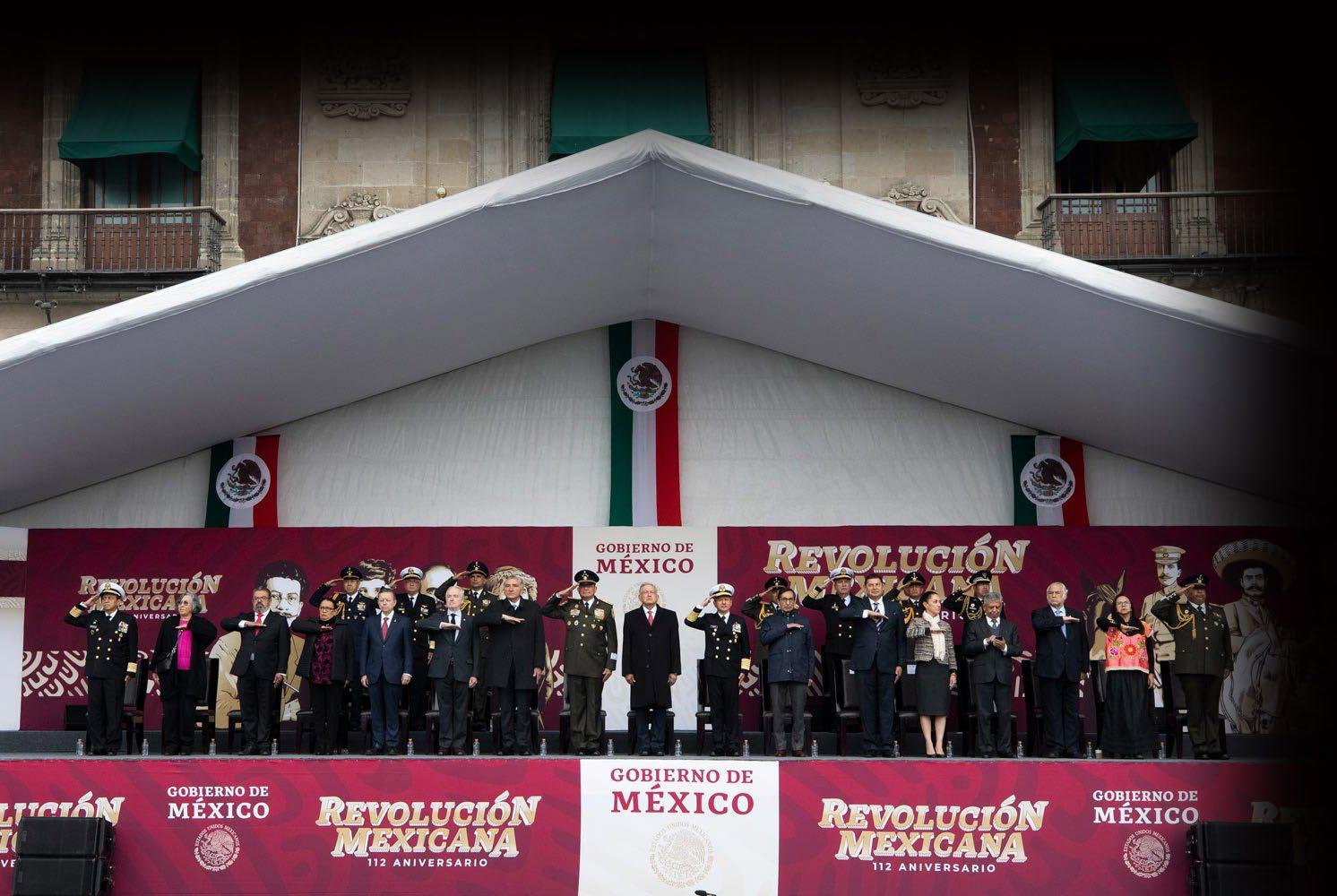 En el Zócalo capitalino, el presidente Andrés Manuel López Obrador encabeza el pase de revista a las Fuerzas Armadas para así iniciar el desfile cívico-militar por el 112 aniversa rio de la Revolución Mexicana. Acompañado por la jefa de Gobierno, Claudia Sheinbaum, así como por los secretarios de la Defensa Nacional y la Marina, Luis Cresencio Sandoval y Rafael Ojeda, respectivamente, el mandatario arrancó esta conmemoración. Durante la ceremonia, López Obrador tam bién entregó distintos ascenso en Tiempos de Paz a elemen tos del Ejército, la Marina y la Fuerza Aérea. Cabe mencionar que el desfile de la Revolución Mexicana se adelantó; es decir, fue más temprano para que no se empalmara con el horario de la inauguración del Mundial de Qatar 2022 que inicia hoy. El pasado 18 de noviembre, en su conferencia matutina, López Obrador anunció que la actividad de hoy sería más temprano para que la ciudadanía pudiera disfrutar de éste, así como de la justa mundialista. El desfile iniciará temprano para que la ceremonia de futbol de Qatar pueda verse más tarde y así también el partido, ya que no todo tiene que ser política, sino también recreación y deporte”, mencionó. Otros de los invitados en este evento son los presidentes de las Mesas Directivas en la Cámara de Diputados y de Senadores, Santiago Creel y Armando Armenta Mier, respectivamente, el ministro presidente de la Suprema Corte de Justicia de la Nación, Arturo Zaldívar. Además, el secretario de Economía, Rogelio Ramírez de la O; la secretaria de Seguridad y Protec ción Ciudadana, Rosa Icela Rodríguez; el secretario de Gober nación, Adán Augusto López; entre otros.