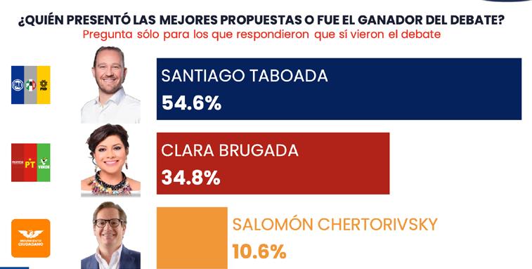 Este domingo, la morenista Clara Brugada, el panista Santiago Taboada y el emecista Salomón Chertorivski se enfrentaron en el segundo debate por la Jefatura de Gobierno de la Ciudad de México. Los candidatos presentaron sus propuestas sobre tres temas relevantes para la capital del país: agua, transparencia y combate a la corrupción. El Instituto Electoral de la Ciudad de México (IECM) designó a la periodista y presentadora de Milenio Elisa Alanís y a su colega de TV Azteca, Juan Manuel Jiménez, como los moderadores de este evento.