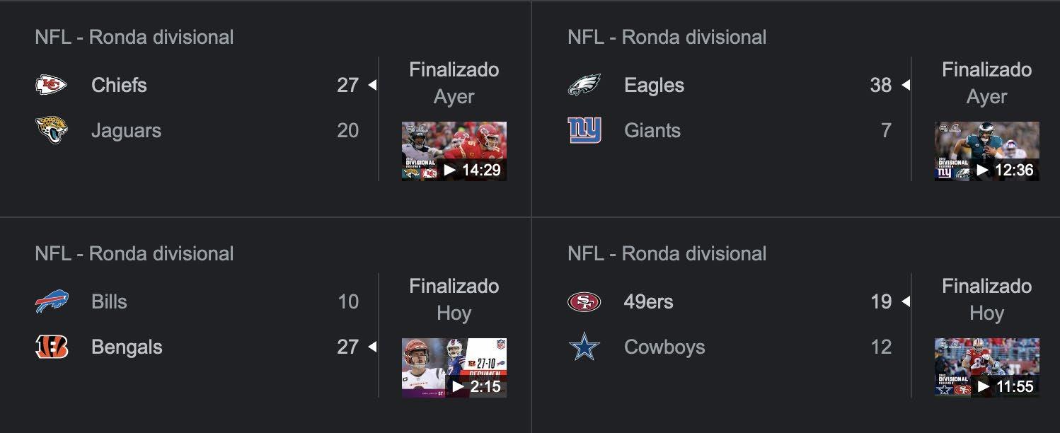 En tanto, Cincinnati remontó de la mano de Joe Burrow para derrotar 24-17 a Baltimore Ravens para quedarse con el boleto a la antesala del juego por el título de la AFC. El partido de la Ronda Divisional de la AFC entre Cincinnati Bengals y Buffalo Bills se jugó este domingo 22 de enero a las 14:00 horas, tiempo del centro de México, en el Highmark Stadium. M