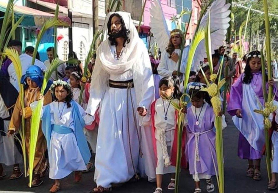 se viven los fieles. Según la tradición, desde las cinco de la mañana los residentes que participan en la escenificación de la Pasión de Cristo, se dieron cita en la Casa de los Ensayos, donde la gran mayoría se personifican como apóstoles. Dos horas después, con sus ramos en mano, los discípulos de Cristo se dirigieron a la casa de los mayordomos en el Barrio de San Miguel a recoger la figura de Jesús de Nazaret.