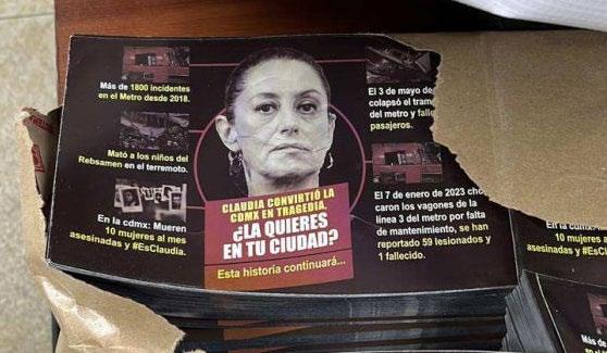 “El secretario de la Contraloría General de la Ciudad de México, Juan José Serrano Mendoza, informó que, derivado de una denuncia ciudadana, la noche de este jueves fue encontrada propaganda (volantes, lonas, entre otros) donde aparece el rostro y mensajes de odio en contra de la Jefa de Gobierno, Claudia Sheinbaum Pardo, en oficinas de la Dirección de Desarrollo Social de la Alcaldía Cuauhtémoc a cargo de Sandra Cuevas Nieves. “Derivado de una denuncia ciudadana al Órgano Interno de Control referente a documentación que se encontraba en la Dirección General de Desarrollo Social (Alcaldía Cuauhtémoc), el Órgano Interno de Control vino a ubicarla y se encontró esto: son 13 paquetes con folletos, unas mantas que dicen esto (foto y mensajes en contra de la Jefa de Gobierno).