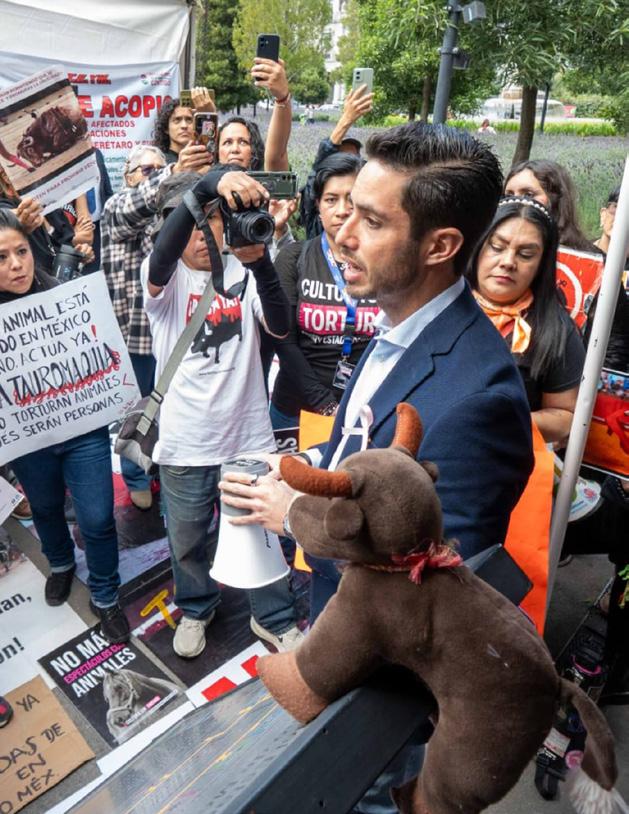 constante del Partido Verde, y que él mismo presentó dos iniciativas previas en el Congreso mexiquense: la primera, en 2018, para prohibir las corridas de toros y sancionar eventos que implicaran sufrimiento animal, y la segunda, en 2021, que reforzaba las disposiciones en materia de bienestar y protección de los seres sintientes.