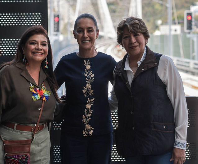 acompañada por Clara Brugada y Delfina Gómez supervisan obras del Tren Interurbano y la Línea 1 del Metro de CDMX
