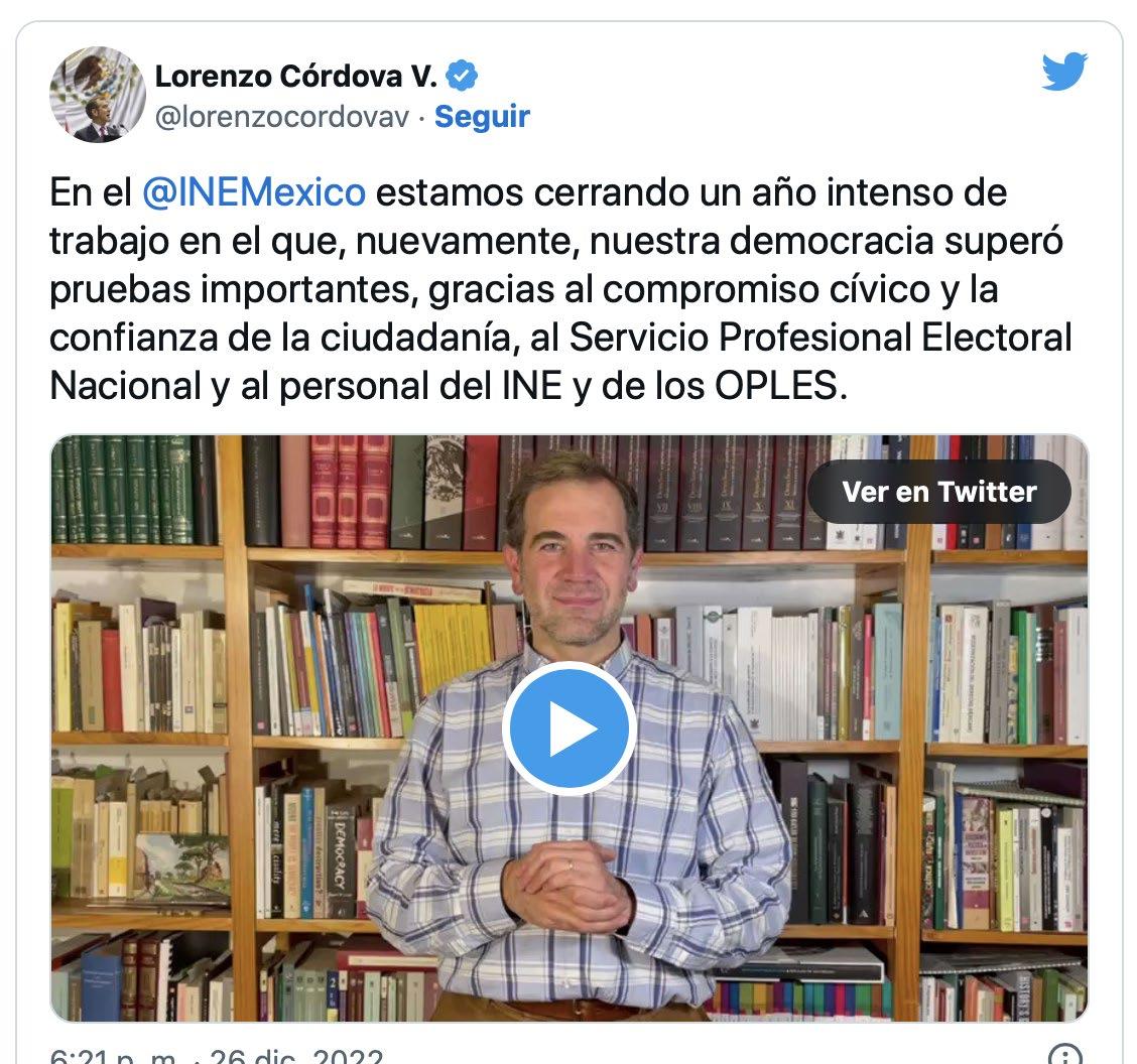 Lorenzo Córdova, consejero presidente del INE, señaló que el sistema democrático estuvo a prueba durante 2022, pero sostuvo que pudieron cumplir con sus obligaciones, como la organización de la revocación de mandato y las elecciones locales. Mediante un video, aseguró que organizaciones ciudadanas, organismos internacionales e instituciones de defensa de la democracia y derechos humanos reconocen al sistema electoral mexicano como uno de los mejores en todo el mundo. Lorenzo Córdova enlistó cinco aspectos que garantizan la democracia: autonomía institucional, padrón electoral confiable en manos de una institución independiente del gobierno; el servicio profesional
