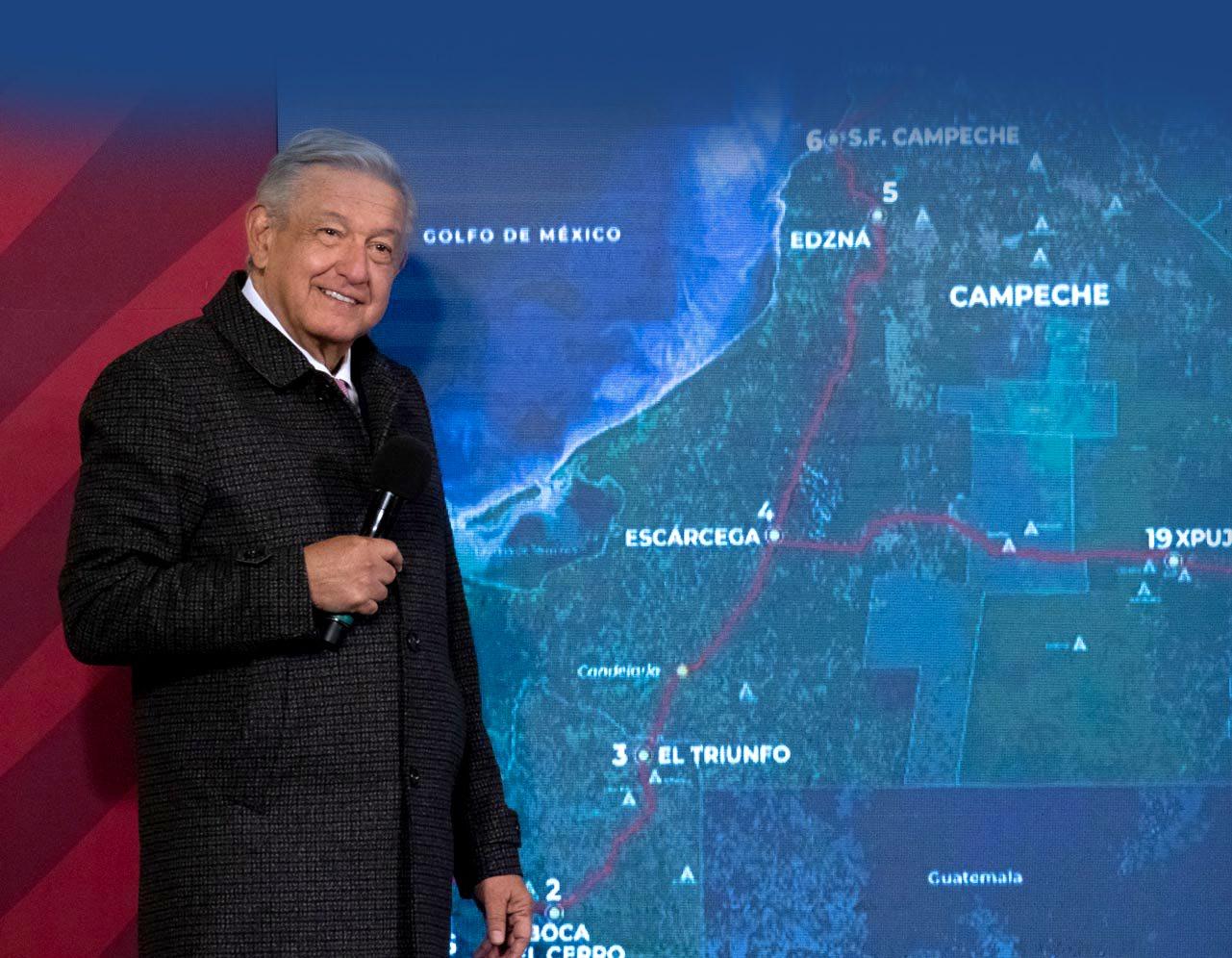 “Vamos a inaugurar en diciembre la obra, aunque el periodo de prueba va a comenzar en julio, en un tramo, estamos viendo si empezamos en el tramo electrificado, bueno desde Campeche que no va a estar electrificado, de Mérida, Cancún, Tulum-Chetumal, a ver si podemos; si no, en julio, para las pruebas, sin duda Mérida-Cancún, y puede ser Tulum y Chetumal; pero ya vamos a estar muy avanzados, y para diciembre todo”, dijo durante su conferencia de este lunes 26 de diciembre.