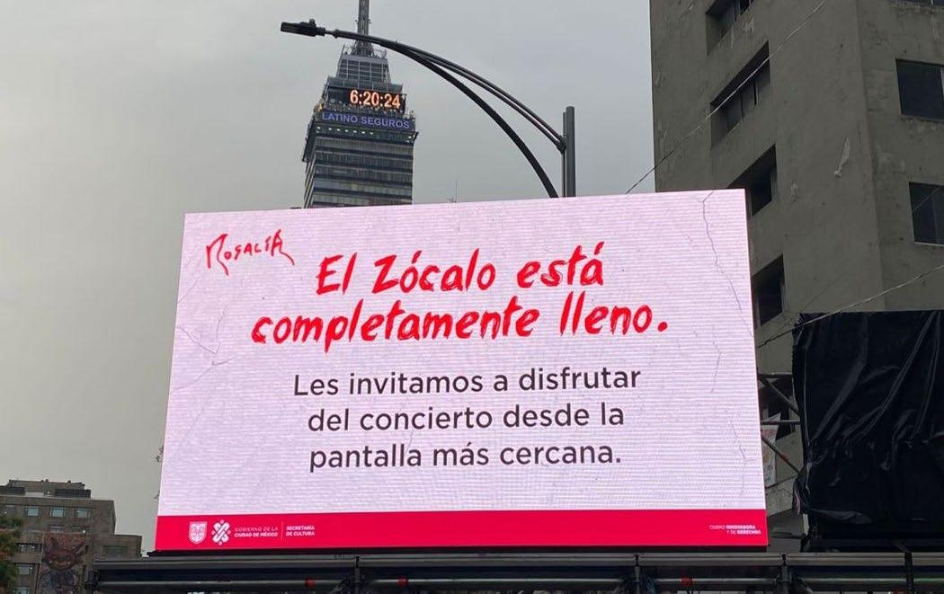 Las pantallas se encuentran establecidas sobre una tarima, alrededor cuenta con equipo de sonido suficiente, además de tener los promocionales a la fecha y hora del concierto de la cantante española. En las pantallas se logra observar la leyenda “El Zócalo está completamente lleno” Les invitamos a disfrutar del concierto desde la pantalla más cercana, con los colores y la tipografía característicos del Motomami World Tour.