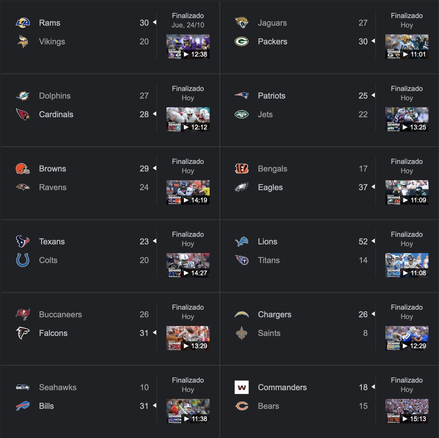 La Semana 8 de la NFL trajo triunfos importantes y sorpresas. Lions y Texans confirmaron su dominio, Patriots, Cardinals y Commanders ganaron en el último minuto.