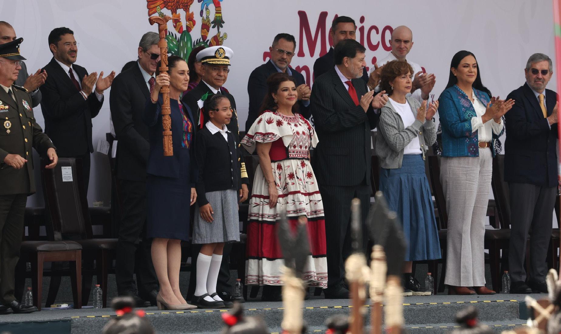 Cientos de mujeres, hombre, niñas y niños realizaron en la plancha del Zócalo una representación monumental de la peregrinación mexica desde Aztlán hasta el lago de Texcoco, donde se fundó la ciudad en 1325; “una ciudad de orden y arte, de poder y de poesía, expresó la presidenta Claudia Sheinbaum Pardo