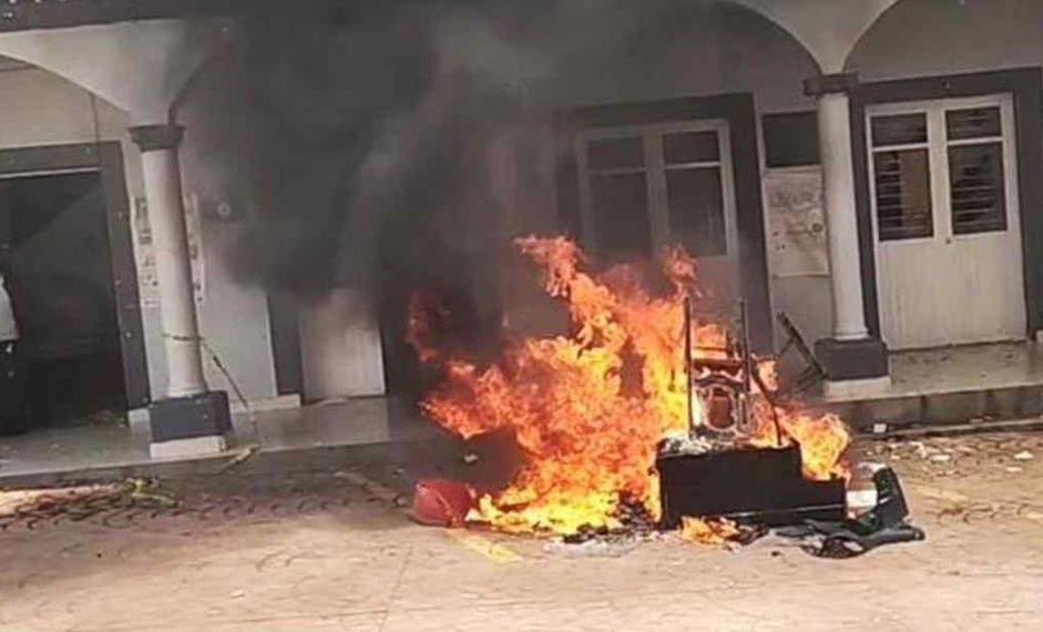“Asesinos, asesinos”: Vecinos destruyen mobiliario de presidencia municipal Lo que había iniciado como una manifestación para exigir justicia se salió de control y los pobladores vandalizaron las oficinas de la presidencia municipal, además de prender fuego a una patrulla y otra unidad. Entre gritos de “asesinos, asesinos”, los vecinos destruyeron el mobiliario de la presidencia que fue desalojada, más tarde acudieron a las oficinas del alcalde, ubicadas en la calle Luis Echeverría, donde varios sujetos ingresaron en la vivienda y comenzaron a sacarla, además de destruir algunas pertenencias. Pantallas, así como monedas y otras pertenencias fueron hurtadas de la casa del alcalde, quien tuvo que salir por la parte trasera ante el temor de que fuera agredido. En tanto que en la cochera incendiaron una camioneta. Al lugar arribaron elementos de la policía estatal, así como de la Guardia Nacional para controlar la situación. M