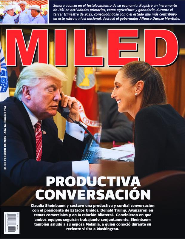 MILED MÉXICO edición matutina diaria. Se edita en su propia planta de Impresiones MLS S.A. de C.V. en Lázaro Manuel Muñoz No. 106 Col. Altamirano. Toluca de Lerdo, Méx. C.P. 50130. Teléfonos: 722 2179880 y 722 2179646. Fundado el 31 de Marzo de 2012. Se distribuye en la Ciudad de México e Interior del País. Certificado de Reserva de Derechos al uso Exclusivo del Título (Indautor) No. 101 110S16475100-2013-04. Certificado de Licitud de Título y Contenido No.16214. Servicios informativos de las agencias Notimex, SUN, EFE, United Feature Syndicate, Inc. NY, United, AP. Oficinas y Salas de Redacción en Nayarit No. 88 Col. Roma, Alcaldía Cuauhtémoc, Ciudad de México. C.P. 06760. Tel. 55644070. Precio del Ejemplar $5 pesos. Números atrasados el doble. Asociado a AIPE (Asociación Internacional de Prensa). Distribuido por la Unión de Expendedores y Voceadores de los Periódicos de México, A.C. Los firmantes son responsables de sus artículos. Se prohibe la reproducción total o parcial del contenido de esta edición. Dirección en Internet www.miled.com