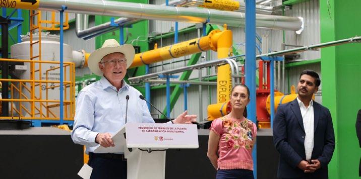 La jefa de Gobierno de la Ciudad de México, Claudia Sheinbaum Pardo, y el embajador de Estados Unidos en México, Ken Salazar, recorrieron la Planta de Carbonización Hidrotermal, una innovación tecnológica del Gobierno de la capital del país y la UNAM, que convierte basura orgánica en carbón, proyecto piloto que procesará 72 toneladas de basura orgánica para la producción de alrededor de 8 toneladas de hidrocarbón.