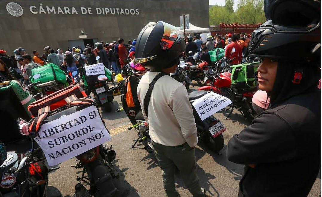 Repartidores de comida se manifiestan en Cámara de Diputados; piden que se les pregunte