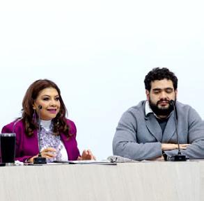 legislativo de sus representantes populares. Personal del Poder Legislativo guio al alumnado, que cursa la carrera de Derecho, por las diversas instalaciones para conocer los distintos salones donde se desarrollan las actividades parlamentarias, entre los que destaca el Salón de Sesiones “José María Morelos y Pavón”, recinto oficial donde sesiona el Poder Legislativo del Estado de México. Asimismo, se les compartió la historia de los murales del recinto, incluido El hombre contemplando al hombre, del artista mexiquense Leopoldo Flores.