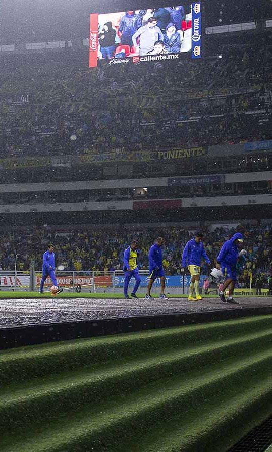 de que se activaran los protocolos de protección civil y de los organizadores en el inmueble. De hecho, en un punto se probó si el balón podía rodar en la cancha del Estadio Azteca, pero com binado con la tormenta eléctrica, se tomó la decisión de suspenderlo por parte del cuerpo arbitral.