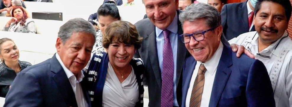 el secretario de Gobernación Adán Augusto López y el senador Ricardo Monreal. En sus redes sociales, Martínez Miranda escribió que platicó y lo seguirá haciendo con la maestra Delfina y señaló que el titular de Gobernación los alentó a dialogar. Esta es la primera ocasión en que ambos se juntan para salir juntos en una fotografía. M