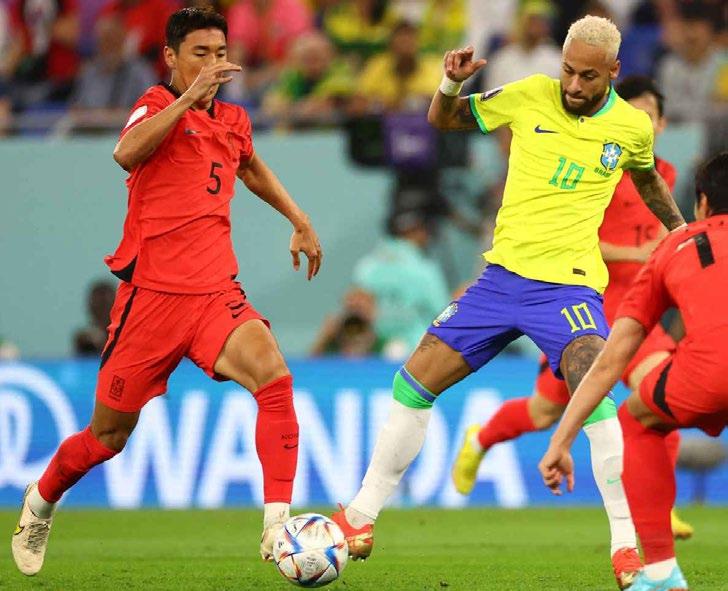 Neymar, delantero de la selección brasileña y autor de penalti del segundo tanto de su equipo contra Corea del Sur en los octavos de final de Qatar 2022 (4-1), fue el tercer jugador de esa nacionalidad en marcar al menos en tres Mundiales, después de Pelé, que lo hizo en cuatro (1958, 1962, 1966 y 1970), y Ronaldo Nazario, en tres, en 1998, 2002 y 2006.