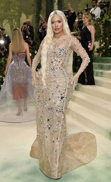 reconoció que este evento la sacó de su zona de confort, también se confesó que se divirtió mucho con este look: “Esto fue idea de mi equipo, y yo dejo que hagan lo quieran. Mis hijos seguramente se están divirtiendo”, agregó. Nicole Kidman lució un impresionante vestido blanco y negro que, reveló, fue una recreación de un diseño de Balenciaga. La actriz confesó que es amante de este tipo de eventos, pues lo que más le gusta es desfilar con imponentes creaciones. “Vale la pena estar aquí, desfilando estos vestidos que son una obra de arte, por eso me encanta venir al Met. Nos encanta esto del pasado y el presente, por eso volvemos a traer estos maravillosos vestidos, nos olvidamos de la gente que los hace y nosotros lucimos su arte”, expresó. Karol G, por su parte, apareció vestida de hada con un atuendo lleno de cristales y transparencias, lo que sorprendió es que, de nueva cuenta, cambió por completo el estilo de su cabello, ahora en un rubio casi blanco y muy largo. Pero la más esperada de la noche fue Shakira, quien llegó casi al final de la noche con un vestido rojo de Carolina Herrera. De acuerdo con los conductores de E!, la propia cantante eligió el color de su atuendo ya que “el rojo la hace sentir bien consigo misma”. Cabe destacar que esta es la primera Met Gala de la colombiana.