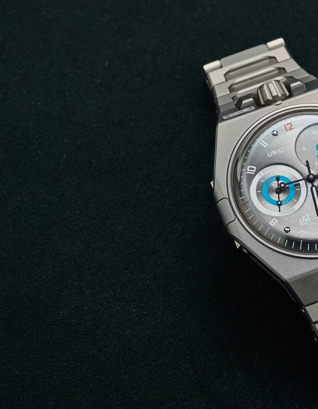 En el interior late el calibre UR-10.01, con reserva de marcha de 43 horas y frecuencia de 28,800 vibraciones por hora. El acabado industrial, preciso y sin ornamentos innecesarios, encaja con la identidad técnica y futurista de la marca.