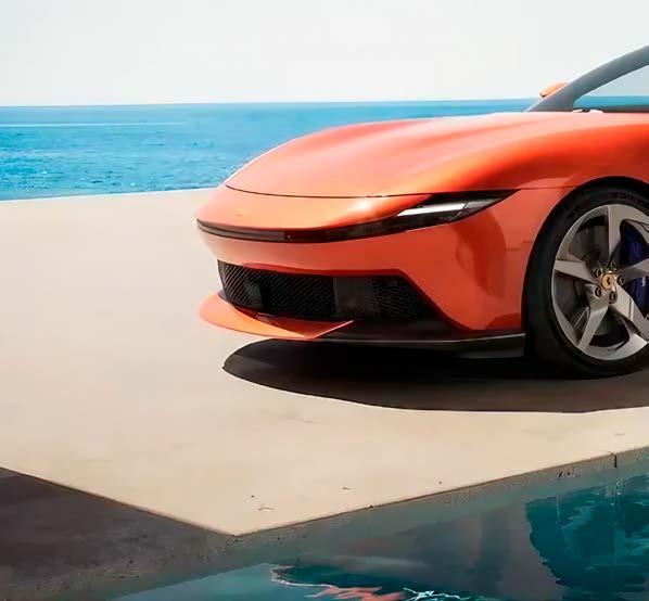 En el interior, el vehículo mantiene el enfoque característico de Ferrari: una mezcla de lujo, tecnología y deportividad. El habitáculo está orientado hacia el conductor, con materiales de alta calidad, superficies revestidas en cuero y detalles en fibra de carbono que refuerzan la sensación de exclusividad. Todo el diseño busca que cada trayecto, ya sea en una carretera costera o en un circuito, se convierta en una experiencia sensorial completa.