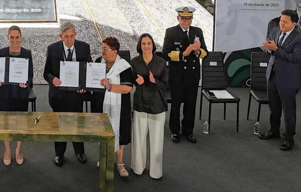 En el marco de esta ceremonia, y en presencia de la Dra. Claudia Sheinbaum Pardo, el Dr. Víctor Rodríguez Padilla, director de Petróleos Mexicanos, destacó la importancia histórica de este evento encabezado por el General Lázaro Cárdenas del Río en 1938, que significó un acto de justicia para el país y le permitió reafirmar su derecho a decidir sobre su soberanía energética.