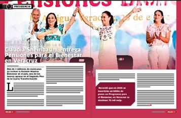 La Presidenta Claudia Sheinbaum Pardo encabezó la entrega de tarjetas de las Pensiones Mujeres Bienestar y de la Pensión de Adultos Mayores, en La Antigua, Veracruz, entidad en la que 2.5 millones de personas reciben los Programas para el Bienestar a través de una inversión de 70 mil millones de pesos (mdp), que hoy son derechos establecidos en la Constitución desde la llegada de la Cuarta Transformación.