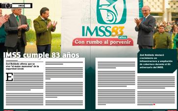 En el marco del 83 aniversario del IMSS, el director general del Instituto Mexicano del Seguro Social, Zoé Robledo, afirmó que la institución “sigue en crecimiento” y que vive “el mejor momento” del Seguro Social y de la seguridad social, al destacar avances en infraestructura, personal y acciones orientadas a ampliar la cobertura hacia otros sectores de la población, como jornaleros agrícolas del campo, casi 400 mil trabajadores independientes y familiares de trabajadores que viven en Estados Unidos.