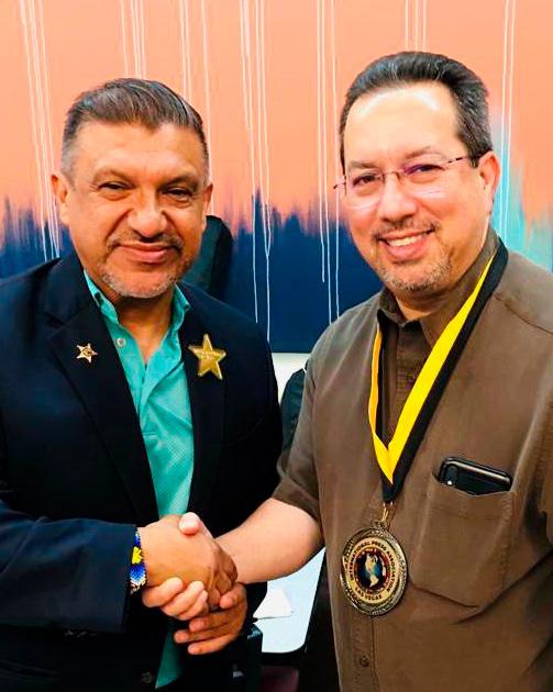 Uno de los momentos más significativos del solemne acto, fue cuando el que esto escribe junto con Rubén Vela, Vice presidente regional de la Asociación Internacional de Prensa, Radio y Televisión con sede en Las Vegas, realizamos la entrega de la prestigiosa Medalla Máximo Orgullo Hispano a las personalidades del gobierno mencionadas, quienes visiblemente emocionadas agradecieron la distinción.