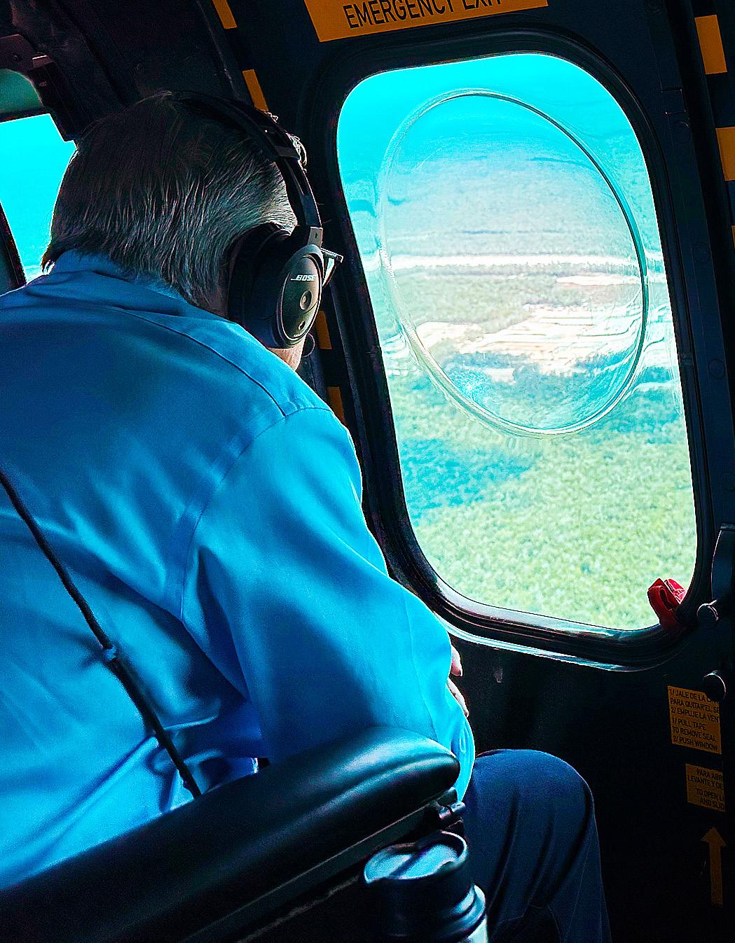 Este día realizó un sobrevuelo en el trayecto Chetumal-Tulum-Cancún-Mérida y encabezó dos reuniones para constatar avances de la construcción del Aeropuerto Internacional de Tulum y de los tramos 5, 4 y 3.