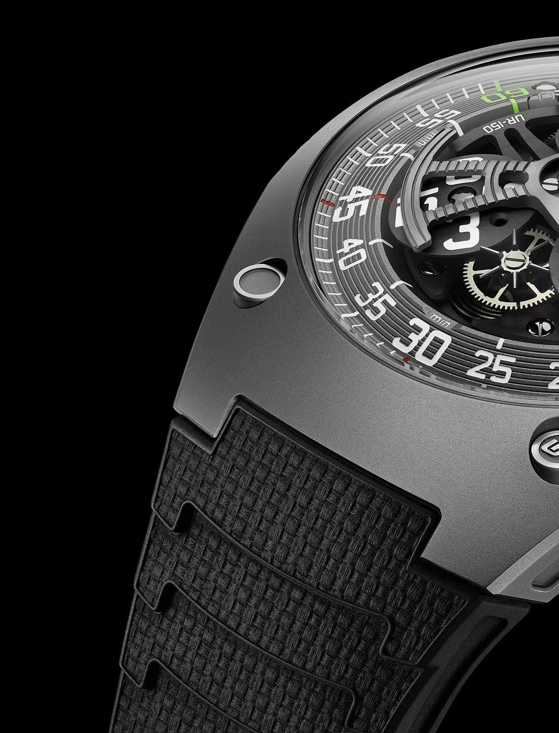 El UR-150 "Scorpion" utiliza un mecanismo novedoso: la punta de una aguja recorre un arco sobre la pista de minutos, la cual ha sido expandida de los habituales 120° de la marca a un arco de 240° para ofrecer una visualización más precisa de los minutos. Al mismo tiempo, el marco alrededor de la hora salta de 60 a 0 en 1/100 de segundo. Dado el esfuerzo mecánico requerido por la distancia y la potencia necesaria, la velocidad e inercia que Urwerk ha enfrentado en este modelo es la más intensa hasta la fecha. Esto los llevó a crear un regulador de velocidad ajustado al volante del UR-150, un mecanismo comúnmente empleado en los repetidores de minutos, para suavizar el retroceso de la aguja retrógrada mientras mantiene la velocidad de la visualización.