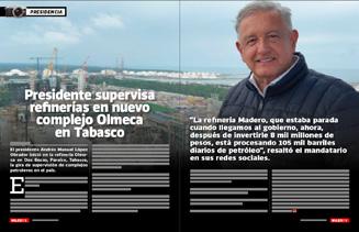Al concluir la gira de supervisión de complejos petroleros, el presidente Andrés Manuel López Obrador destacó que la reha bilitación de la refinería Madero, en Tamaulipas, como parte del rescate de la industria petrolera impulsado por el Gobierno de México, ha dado resultados positivos.