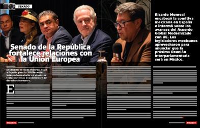 El Senado de la República informó este lunes sobre el Acuerdo Global Modernizado entre la Unión Euro pea y México para 2023, cuyo objetivo es fortalecer las relaciones comerciales y culturales entre ambas naciones. Para ello, explicó Ricardo Monreal Ávi la, presidente de la Junta de Coordinación Política del Senado mexicano, el próximo año será España quien presida el consejo de Europa, en donde “se habrá de discutir el acuerdo de Méxi co con Unión Europea, que es un acuerdo macro, que ya está rebasado”.