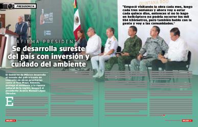 El Gobierno de México desarrolla el sureste del país a través de inversión en obras prioritarias como el Tren Maya. Además, protege el ambiente y la riqueza cultural de la región, aseguró el presidente Andrés Manuel López Obrador.