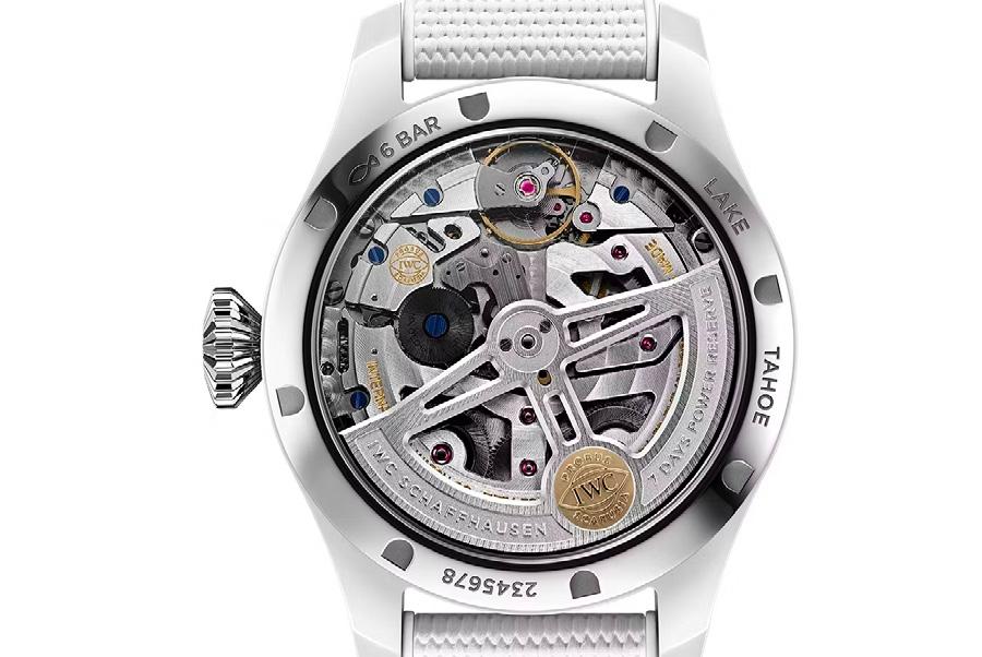 El diseño del Lake Tahoe, un nombre concebido por IWC y Pantone para describir el color blanco, se vio por primera vez el año pasado en forma de cronógrafo. Muchos se preguntaron cuándo veríamos una variación de Perpetual Big Pilot muy parecida al tándem cronógrafo / QP de las ediciones Mojave. Ahora que tenemos este nuevo Top Gun Big Pilot, llamado así por su asociación con el programa Strike Fighter Tactics Instructor (Topgun) en la Marina de los Estados Unidos, está claro que este diseño canta en la iteración en blanco y negro. Mien-tras que el Mojave, con su estética bronceada sobre bronceado, fue visualmente interesante, este nuevo modelo es francamente emocio-nante.